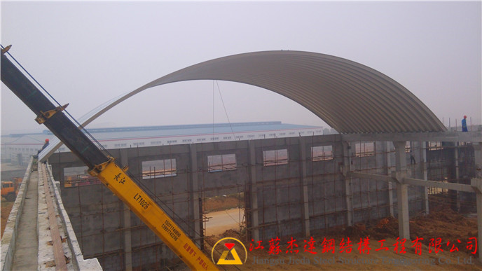 江蘇杰達(dá)鋼結(jié)構(gòu)工程有限公司專(zhuān)注于大跨度拱形屋頂?shù)氖┕ぃ缍确秶?5米至38米之間,致力于打造結(jié)構(gòu)穩(wěn)固、設(shè)計(jì)合理的鋼結(jié)構(gòu)屋頂,滿(mǎn)足不同建筑需求。