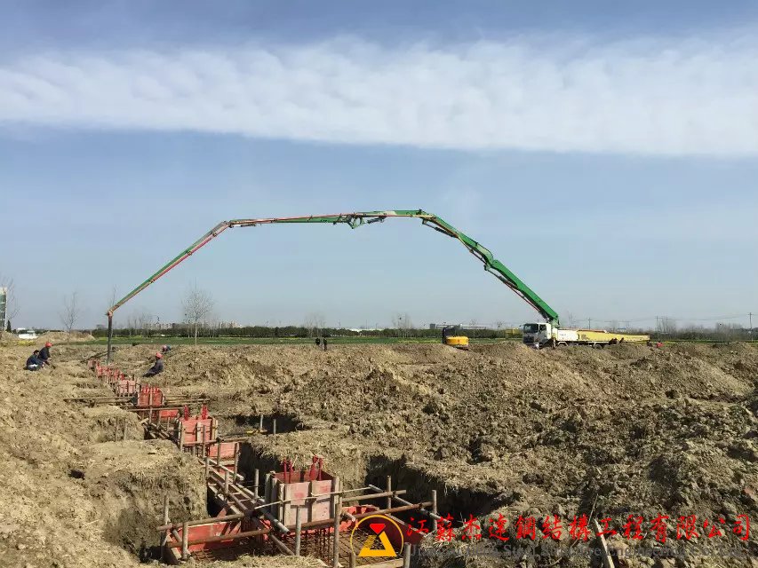 今年的3月江蘇杰達鋼結構工程有限公司,在鹽城地區施工了很多商品混凝土公司的堆料車間,這間車間由于跨度大,杰達鋼構的技術人員采用了做圓弧梁的施工方法。這些堆料車...
